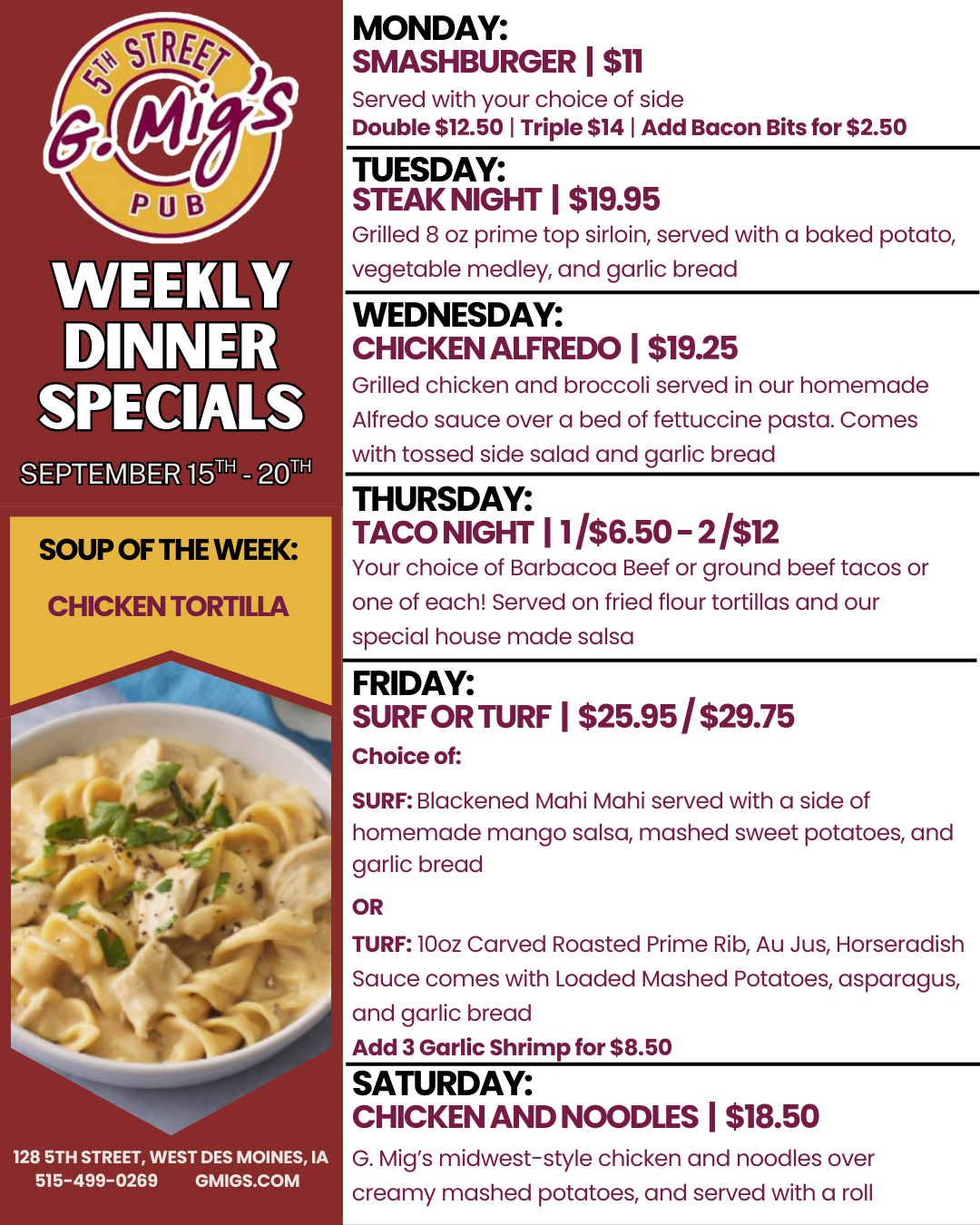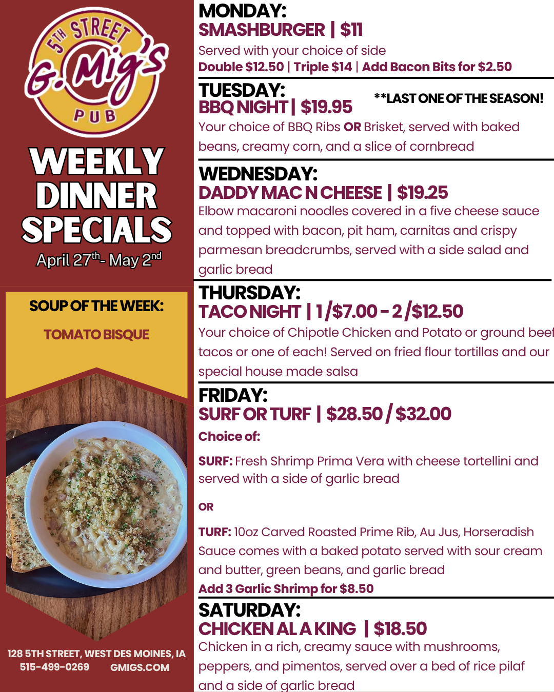 Absolutely fantastic neighborhood pub! The food is delicious, staff is attentive & friendly and drinks are excellent! Love the walking taco nachos and brunch on Saturdays/Sundays! Nothing better than bellying up at GMigs to catch all of the best sports games!