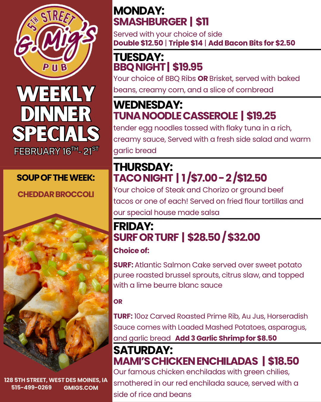 (February 18) ~ Tuna Noodle Casserole ~ $19.25 |